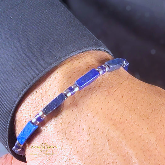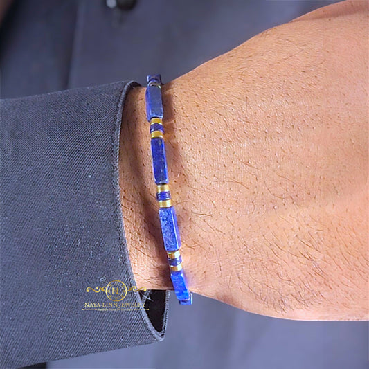 Xanthus Minimalist Men’s Bracelet with Lapis Lazuli Rectangular Beads and Adjustable Rope