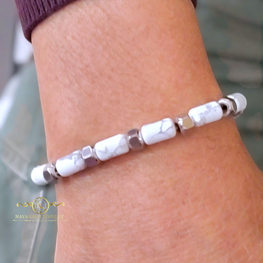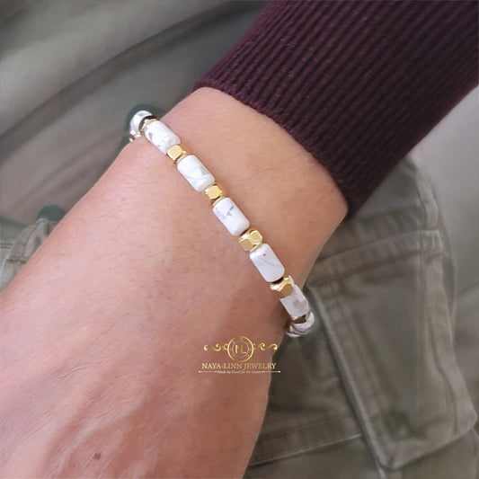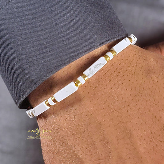 Xanthus Minimalist Men's Bracelet, White Howlite Rectangular Beads with Adjustable Rope