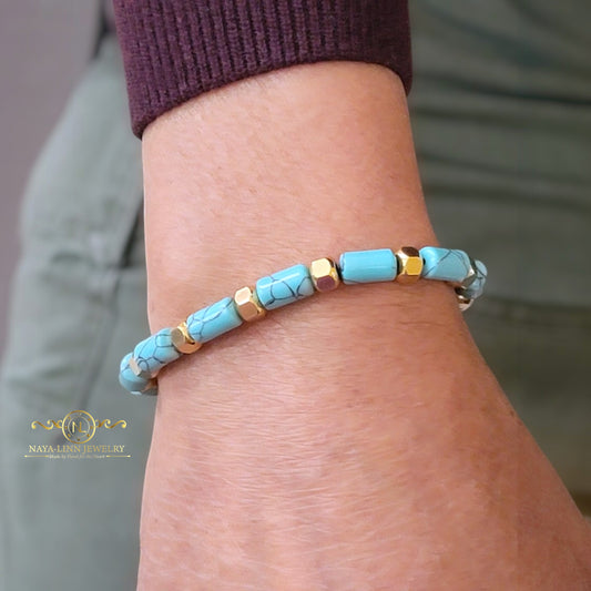 Xanthus Minimalist Men's Bracelet, Blue Howlite Rectangular Beads with Adjustable Rope