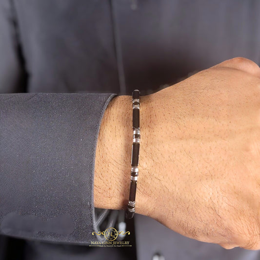 Xanthus Minimalist Men’s Bracelet with Black Agate Rectangular Beads and Adjustable Rope
