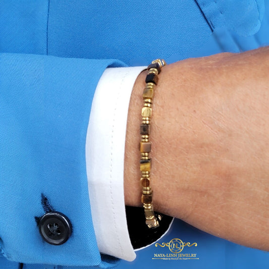 Eren Men/Women's 4MM Square Tiger's Eye Natural Stone Beaded Minimalist Bracelet