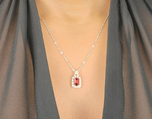 Cora Necklace Emerald Cut Necklace Rhodium Over Sterling Silver