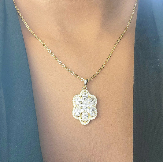 Leah Necklace | Clustered Oval Shaped Diamond Simulants | 14K Gold Plating Over Sterling Silver By Naya-Linn Jewelry