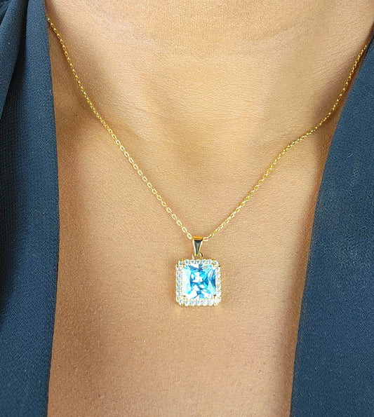 Allison Necklace | Mixed Cuts | Cushion Center Cut | Surrounding Pear-Shaped Diamond Simulants | 18K Gold Vermeil Over 925 Sterling Silver
