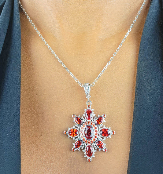 Serenity Snowflake Necklace | Oval Shaped Diamond Simulants | 18K Gold Vermeil Over 925 Sterling Silver