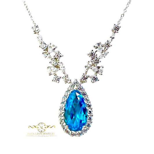 Aria Necklace | Pear Shaped Diamond Simulant | Main Gemstone | 925 Sterling Silver By Naya-Linn Jewelry