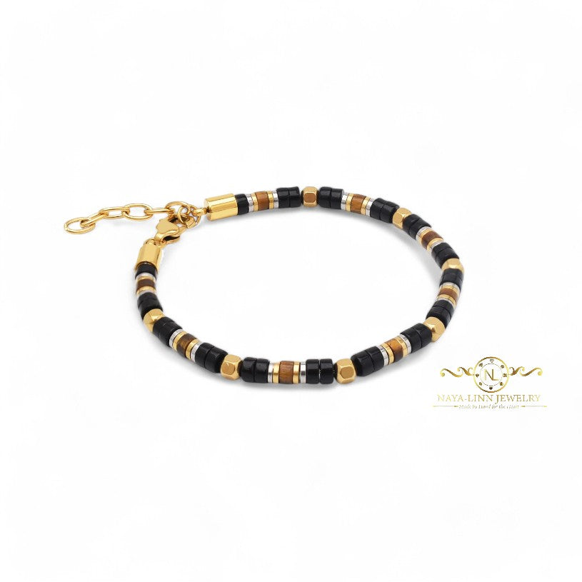 Leonidas Tiger's Eye and Black Agate Bracelet-3x2MM Natural Gemstones with Stainless Steel Lobster Clasp