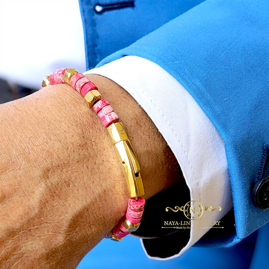 Achilles Unisex Rhodonite Bracelet with Curved Bayonet Clasp