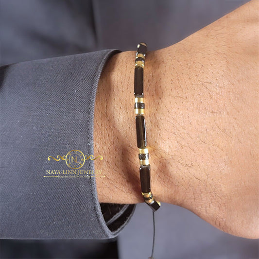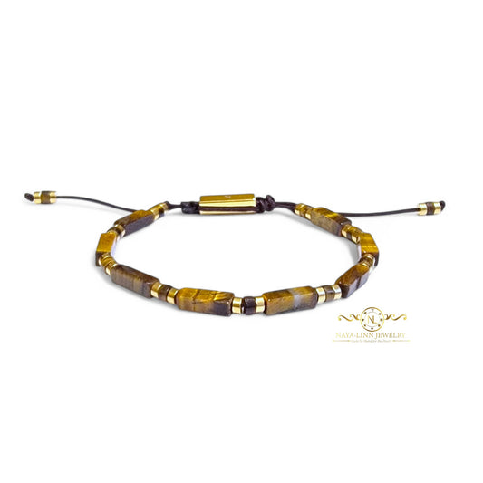 Xanthus Minimalist Men’s Bracelet with Tiger's Eye Rectangular Beads and Adjustable Rope