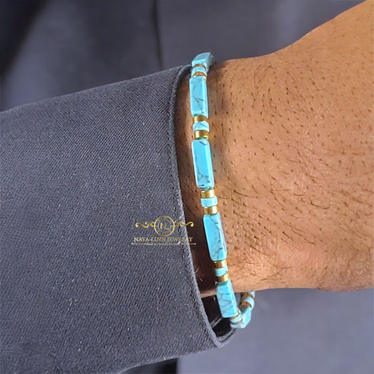 Xanthus Minimalist Men's Bracelet, Blue Howlite Rectangular Beads with Adjustable Rope