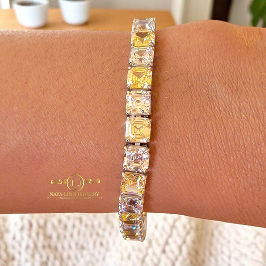 Aaliyah Bracelet | Tennis Bangle | White Gold Plated Over 925 Sterling Silver | 6MM Ascher Cut Cubic Zirconia | Gift for Her | Occasion| Everyday